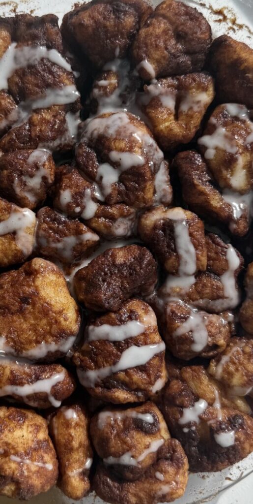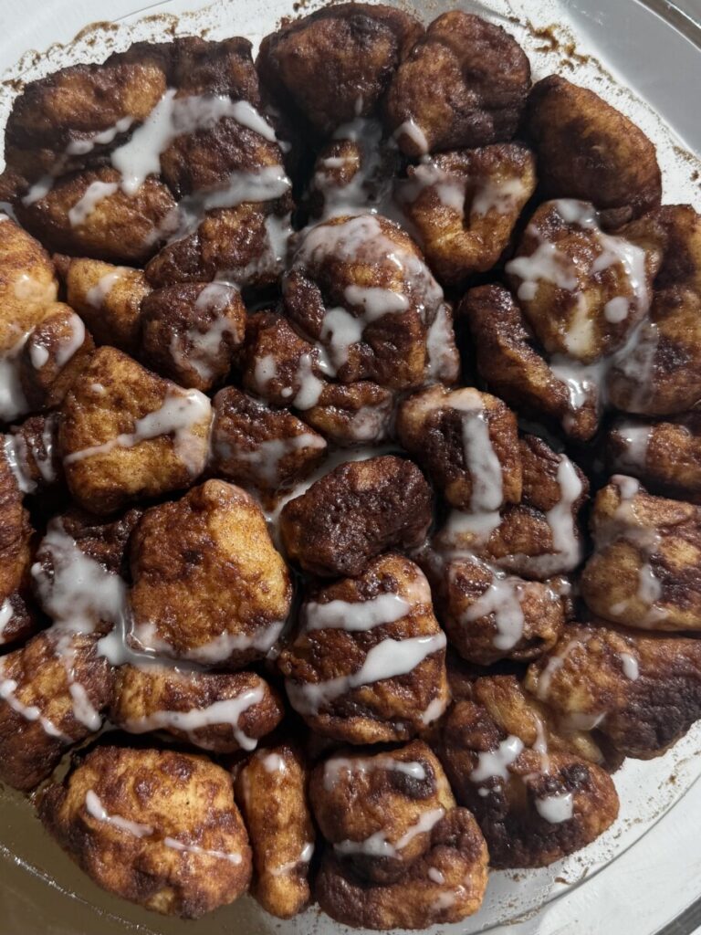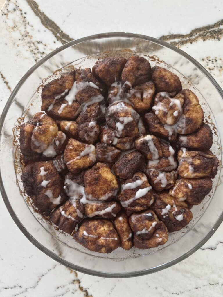 Well. Sort of! I’ve never made monkey bread before, but after I tossed the dough balls in the melted butter and cinnamon and sugar, I quickly realized this was absolutely monkey bread lol. No complaints though. I baked it in the oven and my husband and I polished off almost the entire dish in one day.