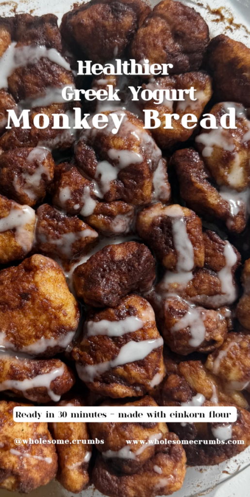 This healthier Greek yogurt monkey bread is so fluffy, easy to make, high protein and made with einkorn flour and coconut sugar!